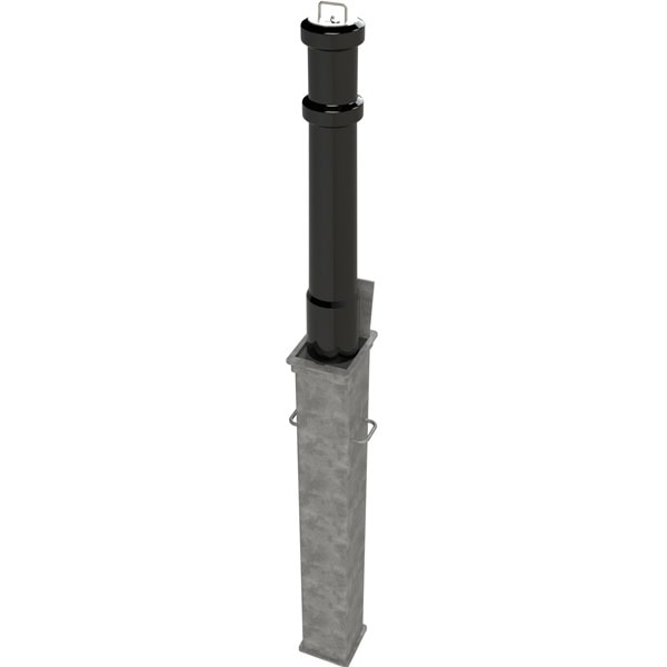 Large round Cast polyurethane telescopic security post with galvanized inner steel core, 120mm diameter, 7mm wall thickness, 850mm above ground, 10 pin high security integral lock, keyed alike or to differ.