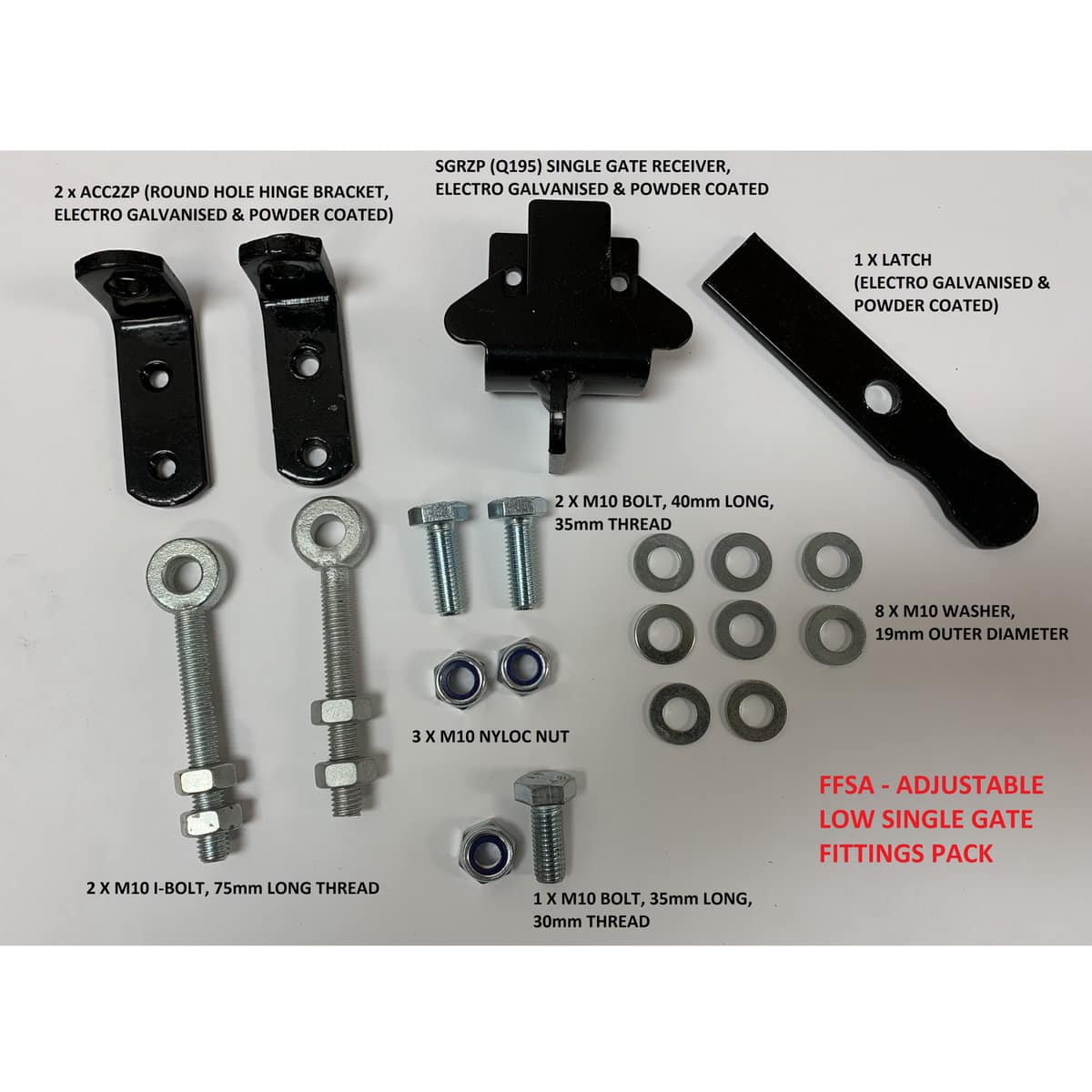 Fittings included; comes with hinge angle brackets, bolts, wall mounted universal latch. (No screws or wall plugs included) Easily fixes to brickwork, metal or timber posts. Nuts and bolts must be painted after fitting to prevent the onset of rust.